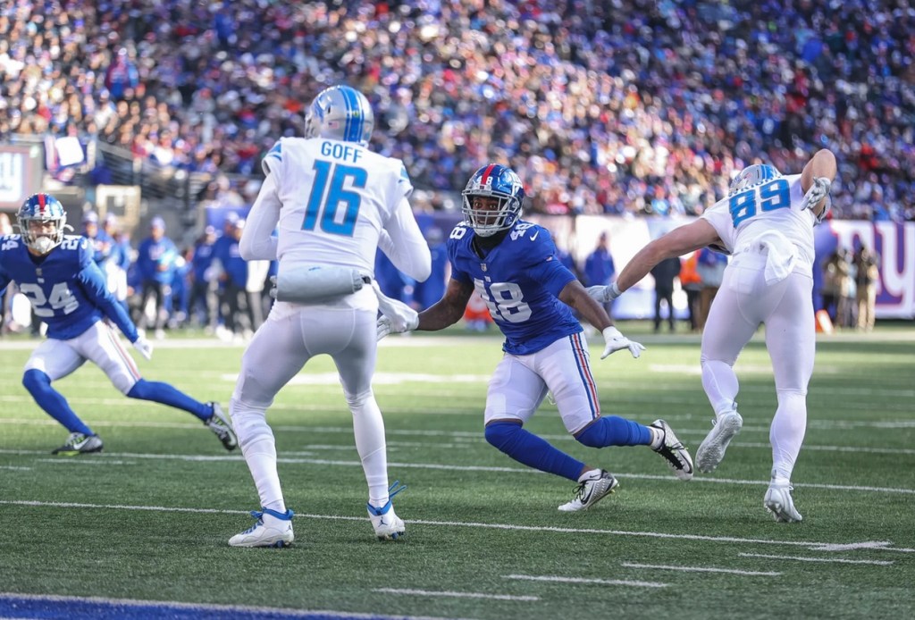 The Lions defense shut down NFL leading rusher Saquon Barkley and forced three turnovers on a cold, blustery afternoon at MetLife Stadium.