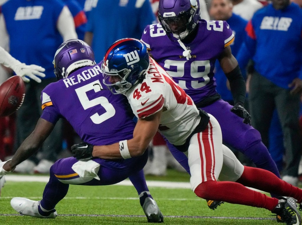 The Giants got a 2-yard touchdown run by Saquon Barkley to take a 31-24 lead with 7:47 to play. They sealed the victory when Xavier McKinney tackled Minnesota’s T.J. Hockenson short of the first down on a desperation fourth-and-8 with 1:44 to play and the Vikings out of timeouts.