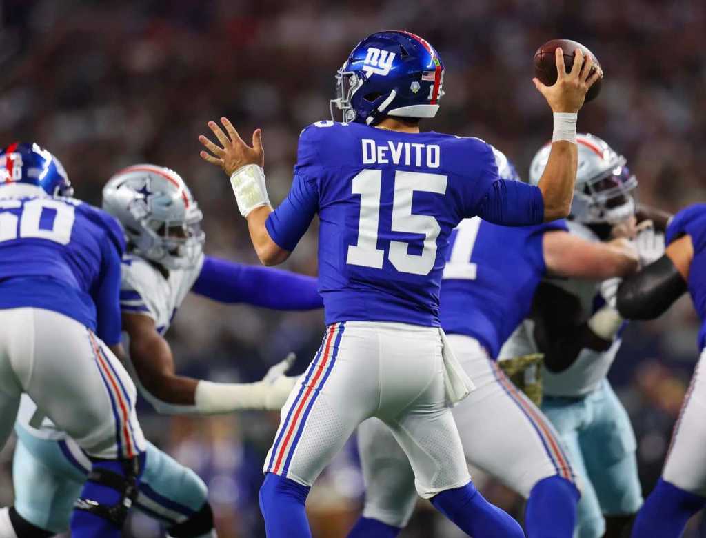 - Tommy DeVito finished 14 of 27 passing for 86 yards with 2 touchdowns and an interception. He was sacked five times.
