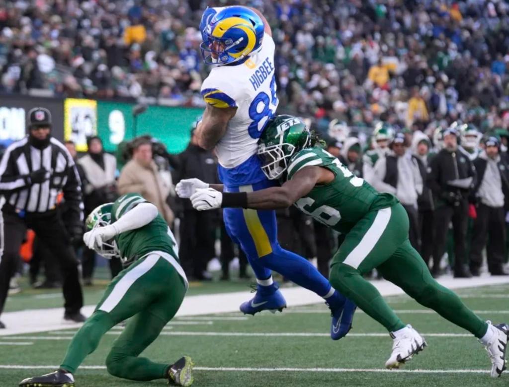 On the ensuing drive, Rodgers turned the ball over for the first time since Week 13. Curl punched the ball out from Rodgers’ hands and rookie edge rusher Jared Verse recovered on the Jets’ 21-yard line. Stafford’s touchdown pass to TE Tyler Higbee put the visitors up, 16-9, and the Rams later added a field goal with 5:22 remaining to seal the game.