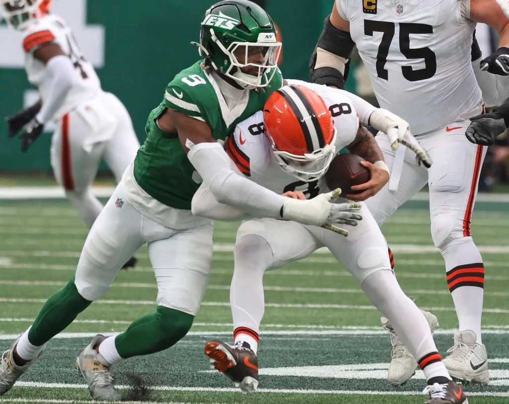 Fueled by two game-changing special teams plays, a season-high 6-sack performance and some fourth quarter magic from RB Breece Hall, the New York Jets (2-7) topped the Cleveland Browns (2-7) on a rainy Sunday at MetLife Stadium for their second straight victory, winning 27-20.
