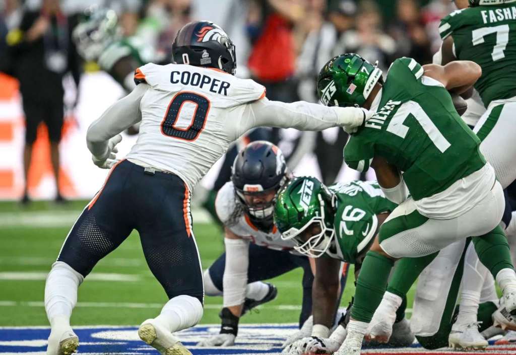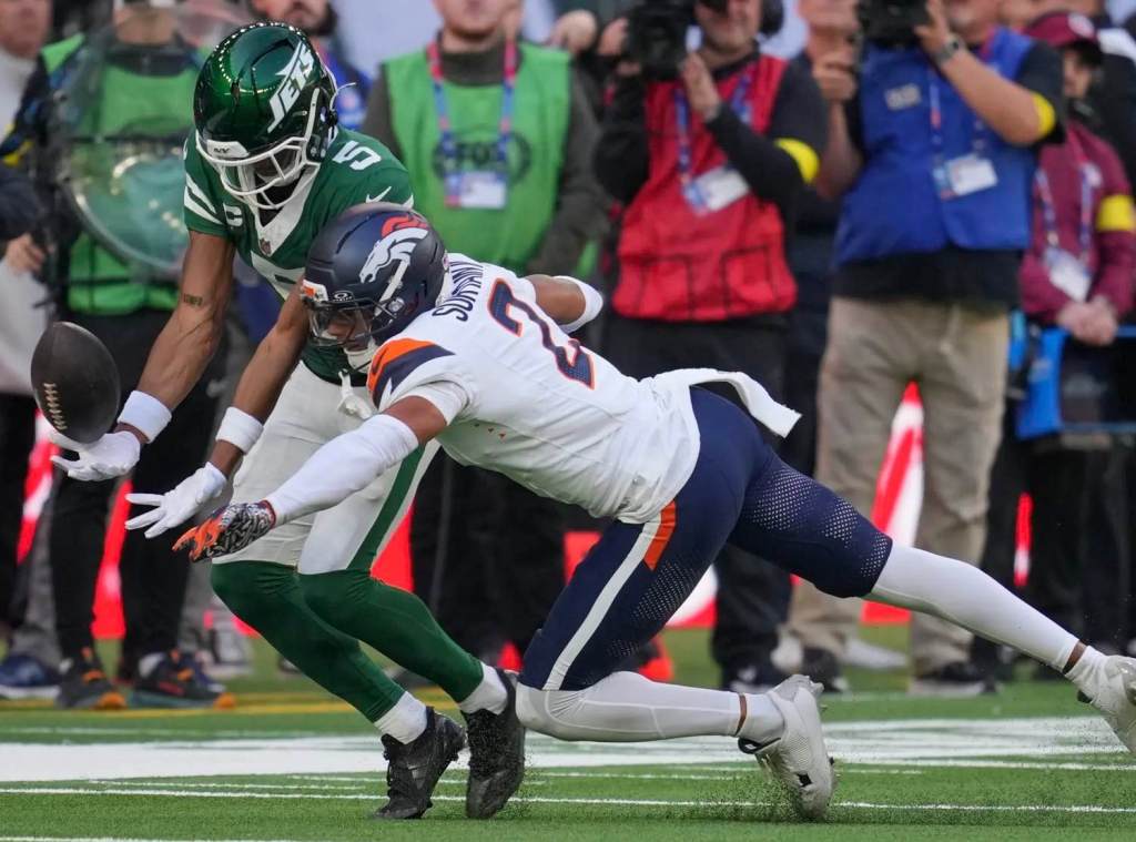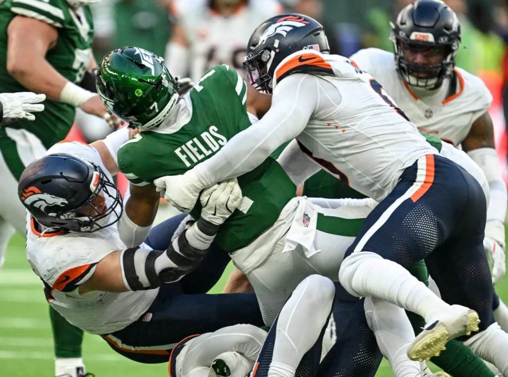 Denver quarterback Bo Nix threw the only touchdown of the game at the end of the first quarter at the Tottenham Hotspur Stadium and the team’s defense sacked Jets QB Justin Field nine times in an affair which lacked offensive firepower – the nine sacks on Fields was the same number as the amount of successful pass attempts he had during the whole game.