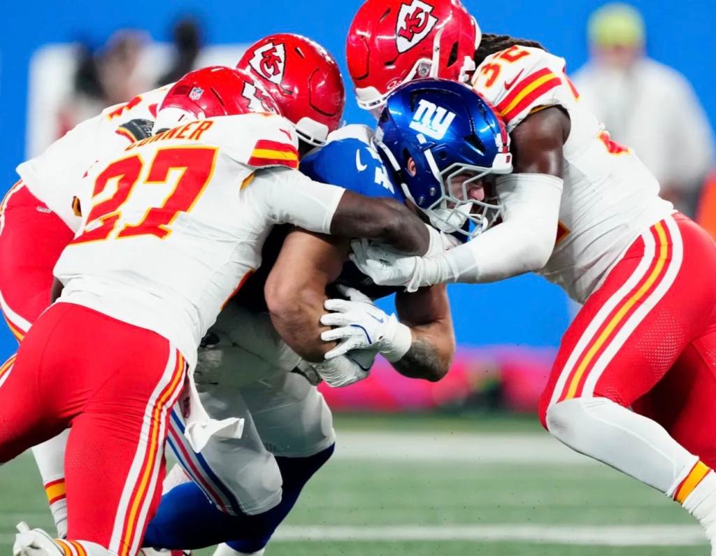 Star quarterback Patrick Mahomes completed 22 of his 37 pass attempts for 224 yards and a touchdown against the Giants’ secondary.