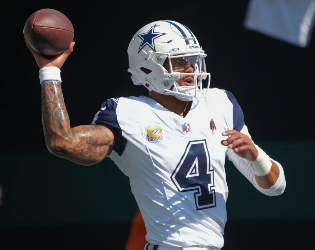 Justin Fields threw for 283 yards and two touchdowns while running for 26, and Breece Hall rushed for 113. Dak Prescott threw four touchdown passes to continue his MVP-like pace, and the Cowboys ran for 180 yards.