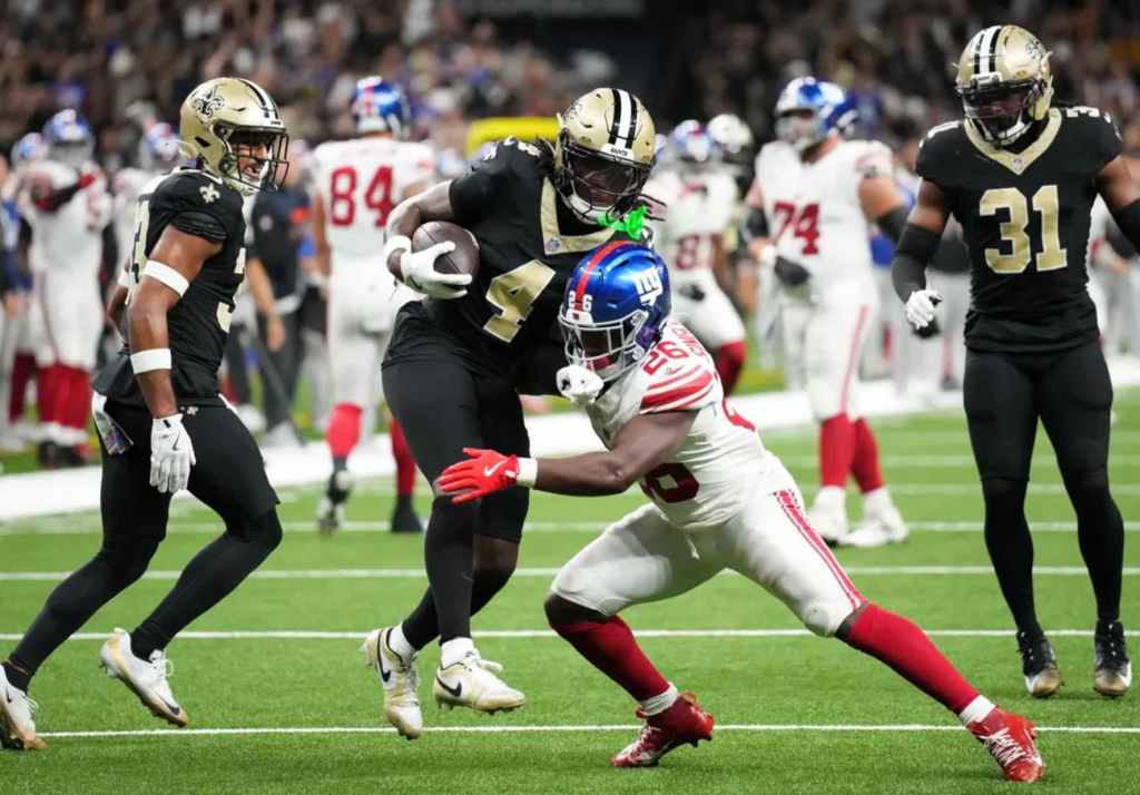 The Giants jumped out to a double-digit lead in New Orleans but then turned the ball over on five consecutive possessions in a 26-14 loss to the Saints, who scored 23 unanswered points. The Giants fell to 1-4.